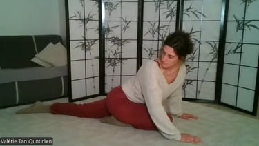 Nous pratiquons des mouvements doux au sol et debout pour réveiller notre force interne en douceur et étirer nos méridiens (Tao Yin et Chi Gong des méridiens).