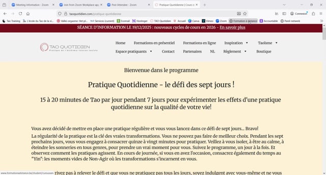 IMPORTANT: pour accéder au programme Pratique Quotidienne, il n'est pas nécessaire d'avoir des notions de Tao préalables.