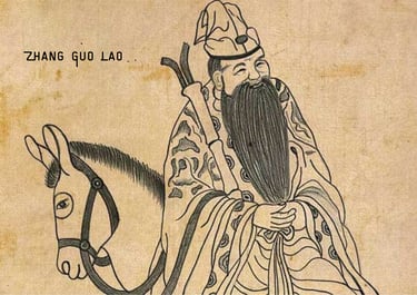 Dans la mythologie taoïste, Zhang Guo Lao, un des huit immortels, est représenté montant son âne à l'envers: il tourne le dos à sa destination. Le futur est une page blanche dont nous ne savons rien. Personne ne peut le prédire. Alors à quoi sert-il de regarder cette page blanche? Pour les taoïstes, il est plus important de tenir son passé à l’œil pour éviter que nos schémas destructeurs n'influencent négativement notre présent.
