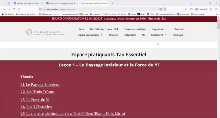 Le programme Tao Essentiel vous donne les bases essentielles d’Alchimie Interne pour développer votre faculté d’autoguérison et votre Conscience.